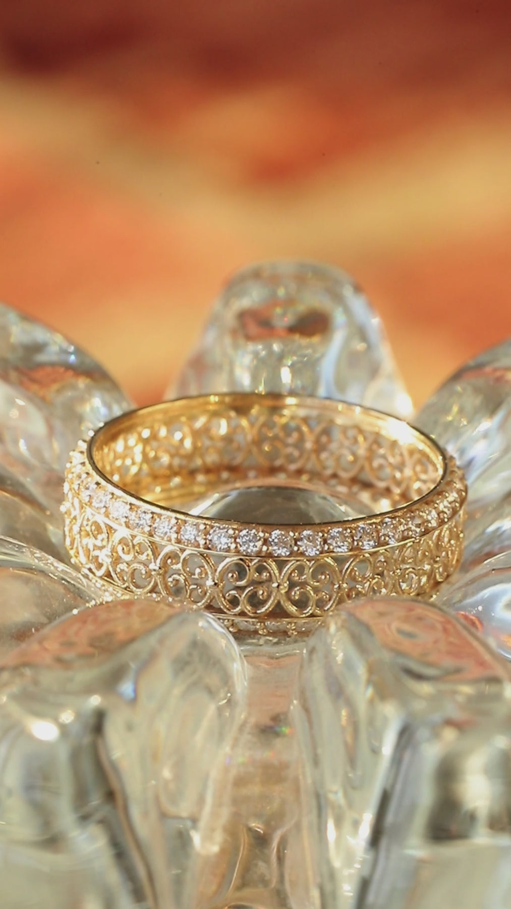 Discover the fifth element in the Quintessence Band. This ring embodies the purest form of alchemical spirit, featuring a harmonious blend of gold and diamonds that appear to shimmer with an inner light. Ideal for those who seek balance and perfection in every aspect of life.